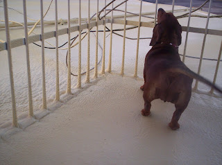 Today was barking day for me. I barked at some birds, at some noisy cars, and at lots of people who came to my house. First the mailman came and I barked at him. Then someone looking for an address came and I barked at him. And theeeen.... someone else came, they were 3 persons. My grandma opened the door and talked to them. And I barked! Then, they came in and went to the roof, and of course I had to bark! They were making a lot of noise and later I heard a funny sound and I wanted to know what was going on.... and my grandma didn't let me get close! Later they left our house.